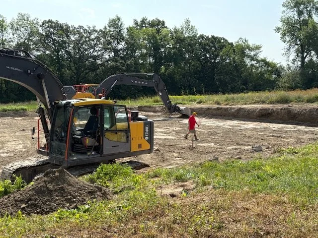 Court leveling in preparation for paving and grading of the southeast end of the walking trail.